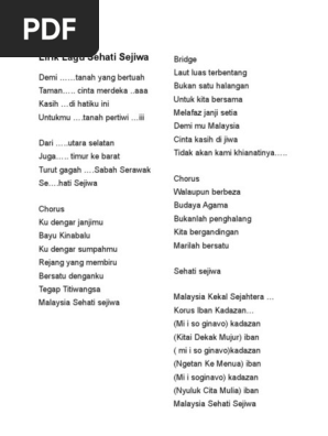 Lirik Lagu Sehati Sejiwa. Dari utara selatan Juga timur ke barat Turut gagah Sabah Serawak Sehati Sejiwa. For more information and source see on this link.